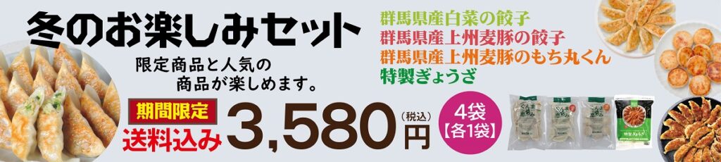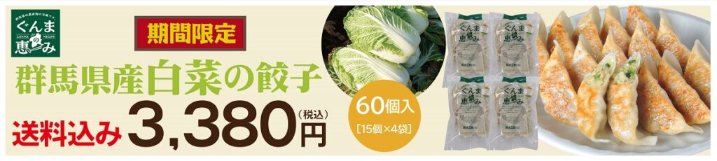 群馬県産白菜の餃子と人気の商品が楽しめます。