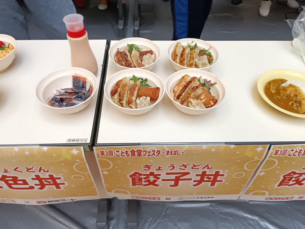 当社は餃子丼を提供し、100食近くをこども達に提供することができました。