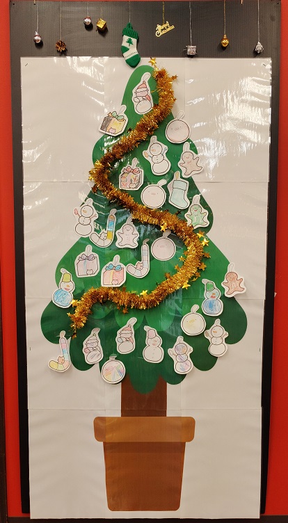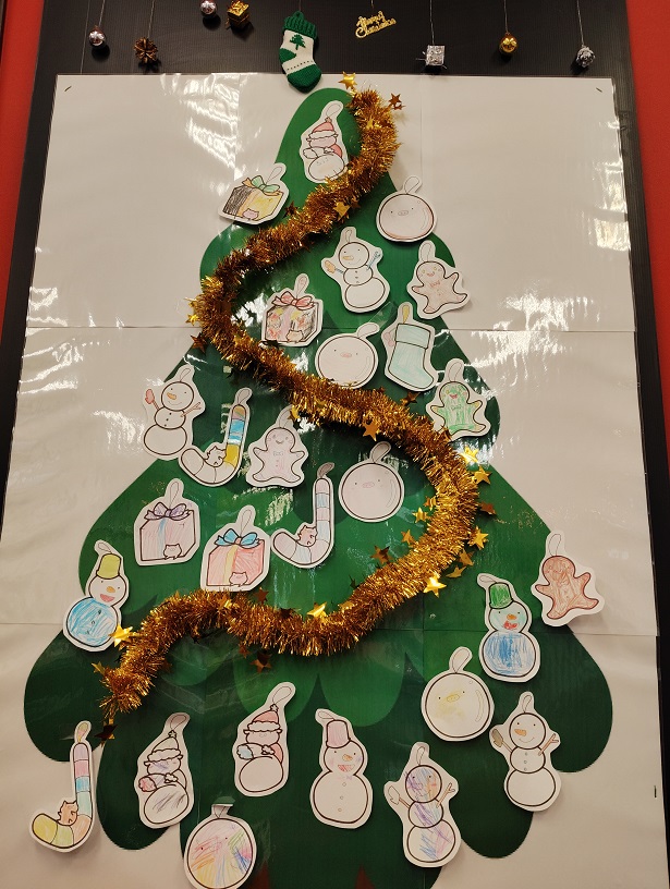 店内のぬり絵スペース、またはご自宅で色塗りをしたオーナメントのぬり絵を、RONのクリスマスツリーに飾ろう!