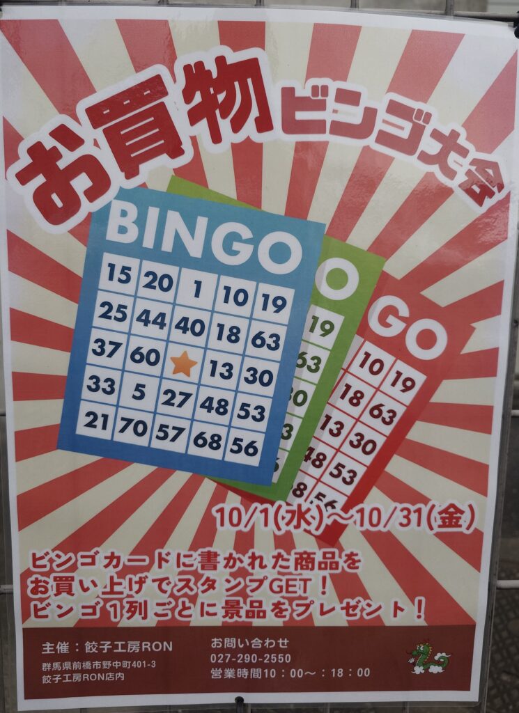 ビンゴカードに書かれた商品をお買い上げで、スタンプをゲット!