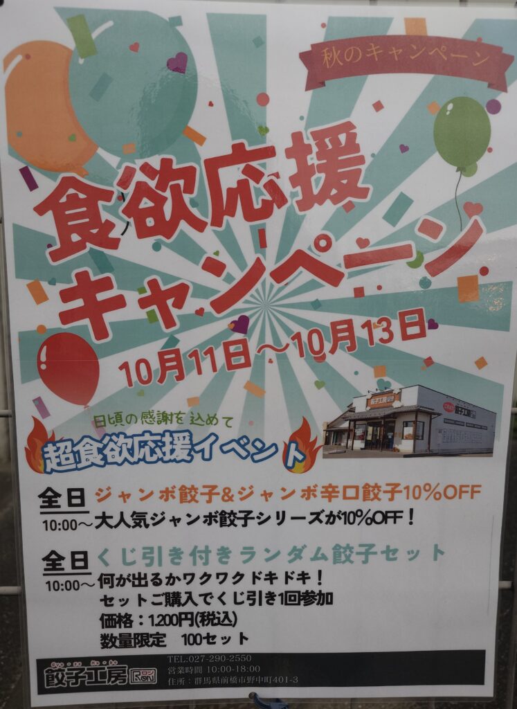 今年はジャンボ餃子&ジャンボ辛口餃子の10%OFFをランダム餃子セットの数量限定販売!