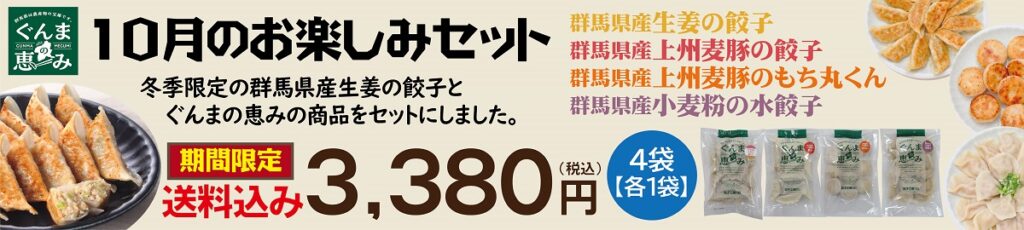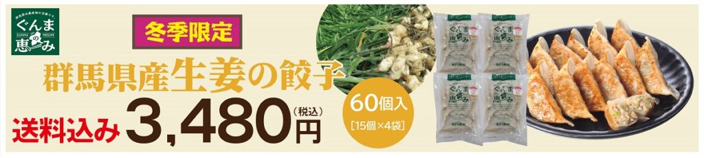 冬季限定の群馬県産生姜の餃子とぐんまの恵みの商品をセットにしました。