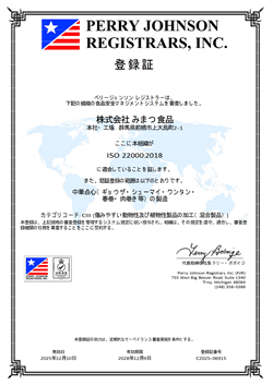 ISO22000、日本冷凍食品協会認定工場など、品質・衛生面の認証制度を積極的に取得してきました。第三者機関による客観的な評価を受け、品質管理のレベルアップに努めています。